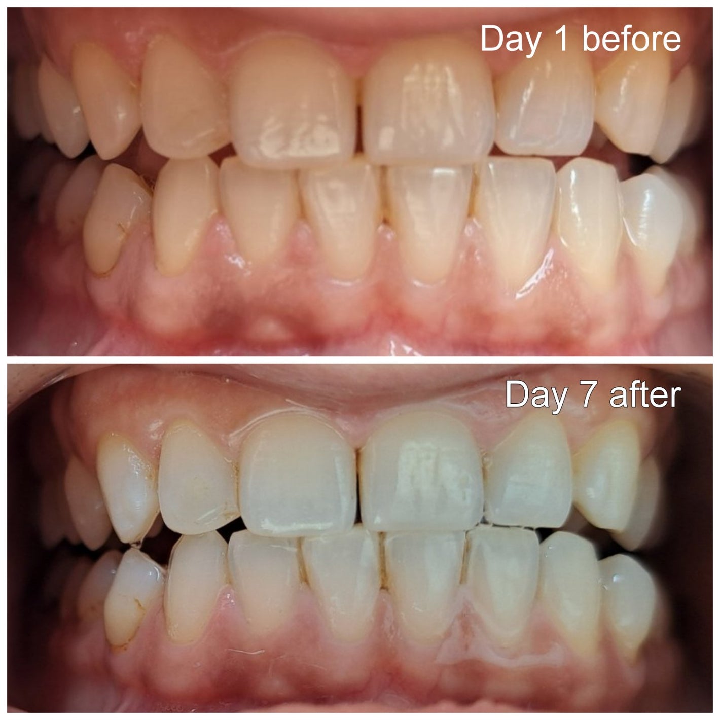 Да – избягвай кафе, чай, червено вино и други силно оцветяващи храни по време на 7-дневната процедура.
